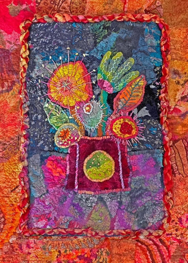 Tropical Flowers This piece was created from nuno felted pieces of fabric, and embellished with flamboyant embroidery stitches.Share this: Click to share on X (Opens in new window) X Click to share on Facebook (Opens in new window) Facebook Like Loading... Related